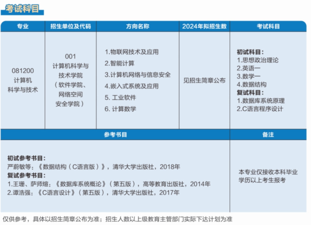 二级招生单位:计算机科学与技术学院(软件学院、网络空间安全学院)