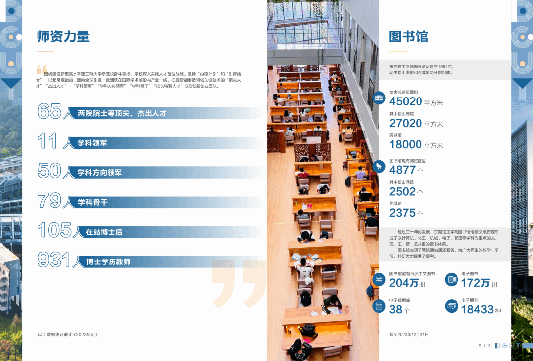 现有松山湖、莞城两个校区,其中松山湖校区坐落在松山湖高新技术产业开发区大学路1号,占地1800多亩(含370亩国际合作创区);莞城校区坐落在莞城区学院路251号,占地330多亩。