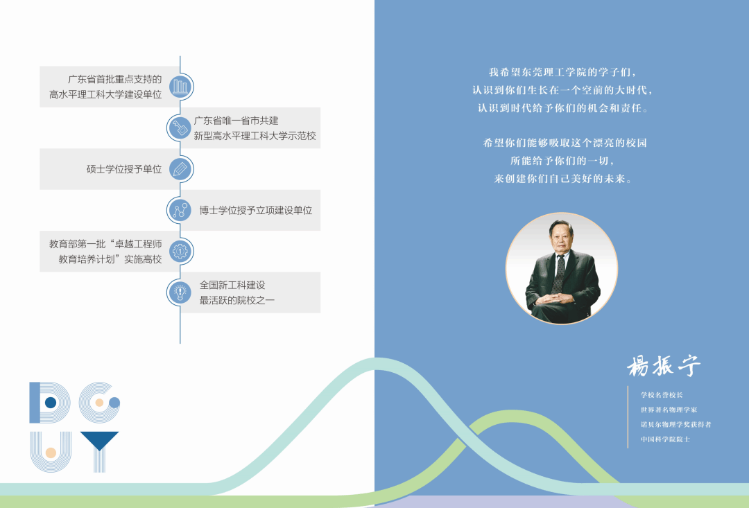 东莞理工学院是东莞第一所普通本科院校,省市共建,以市为主,诺贝尔物理学奖获得者杨振宁博士任名誉校长。