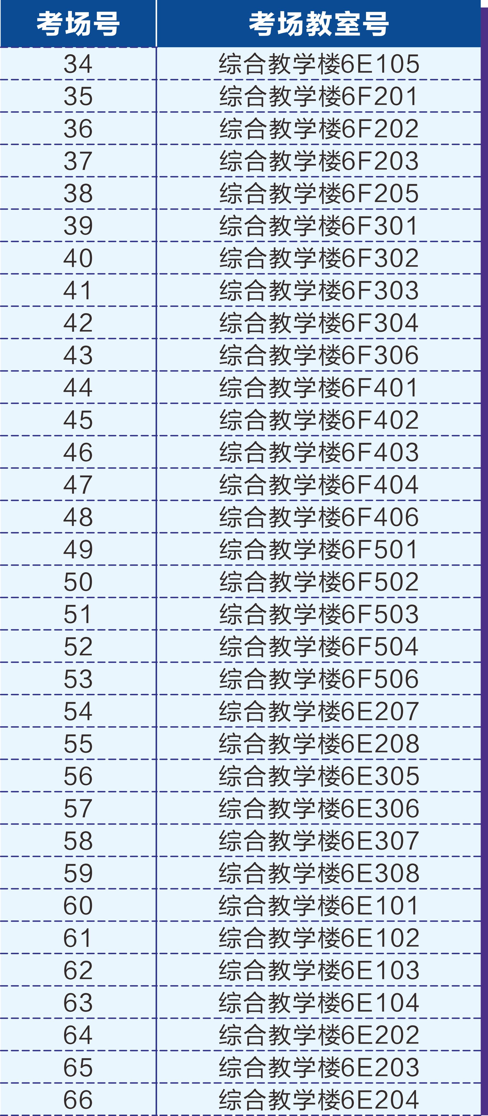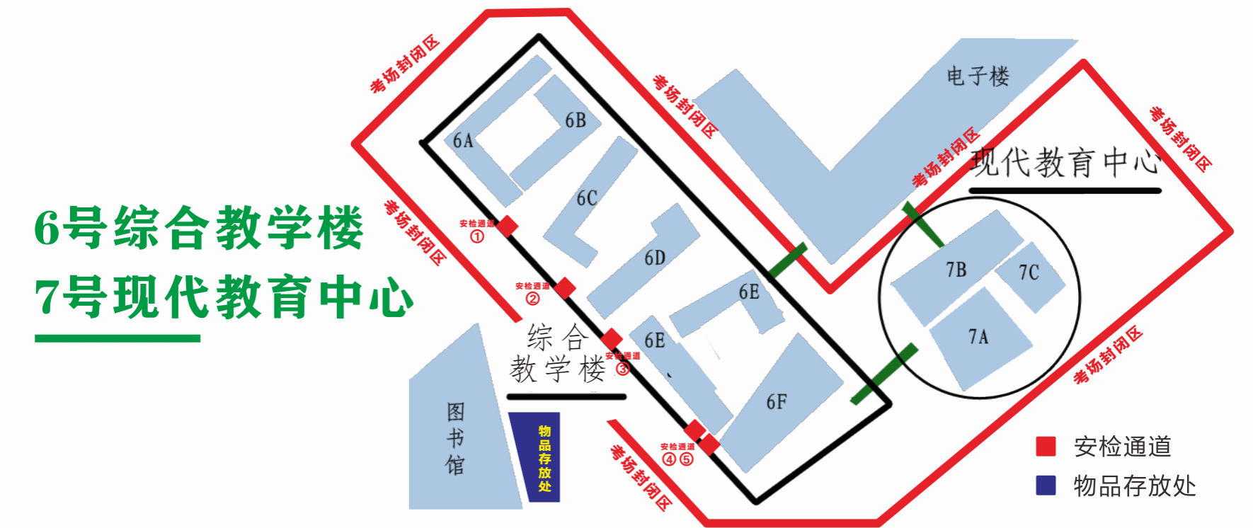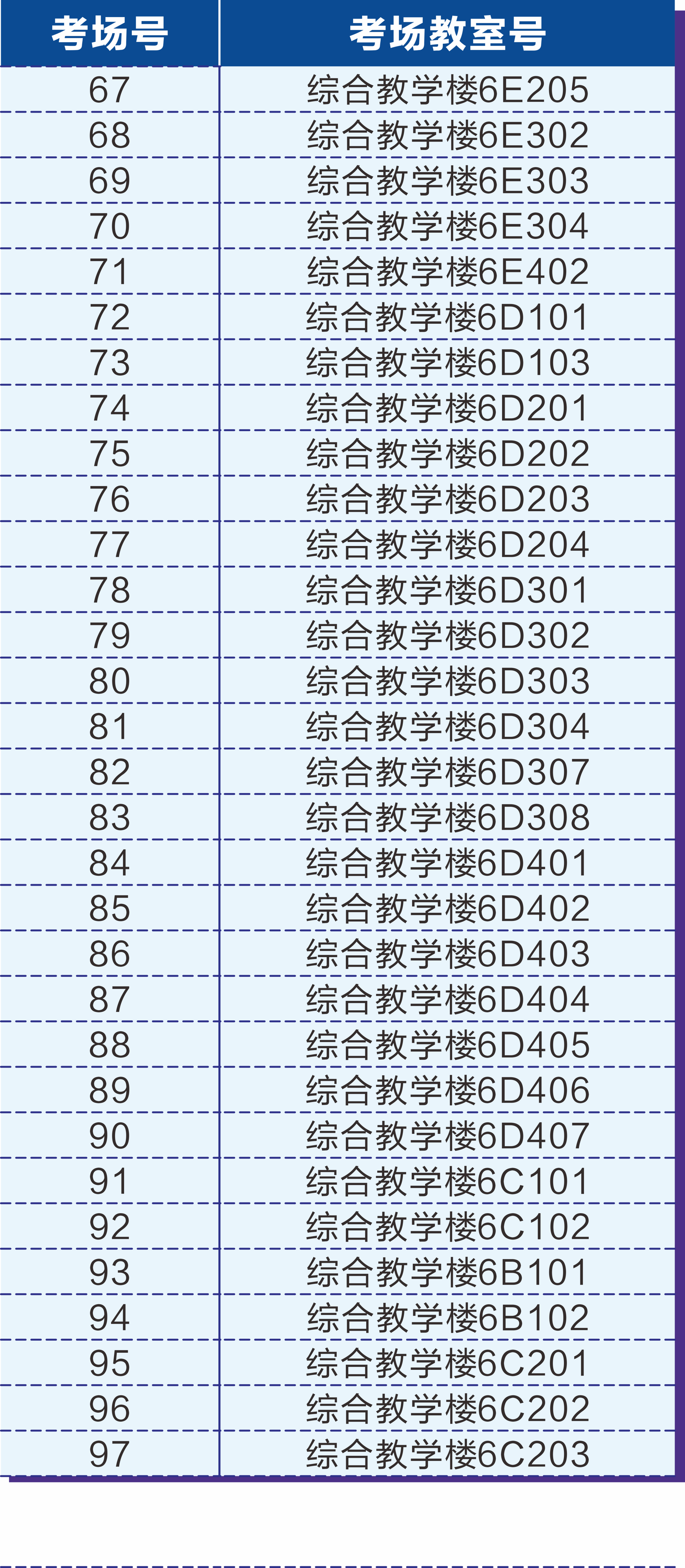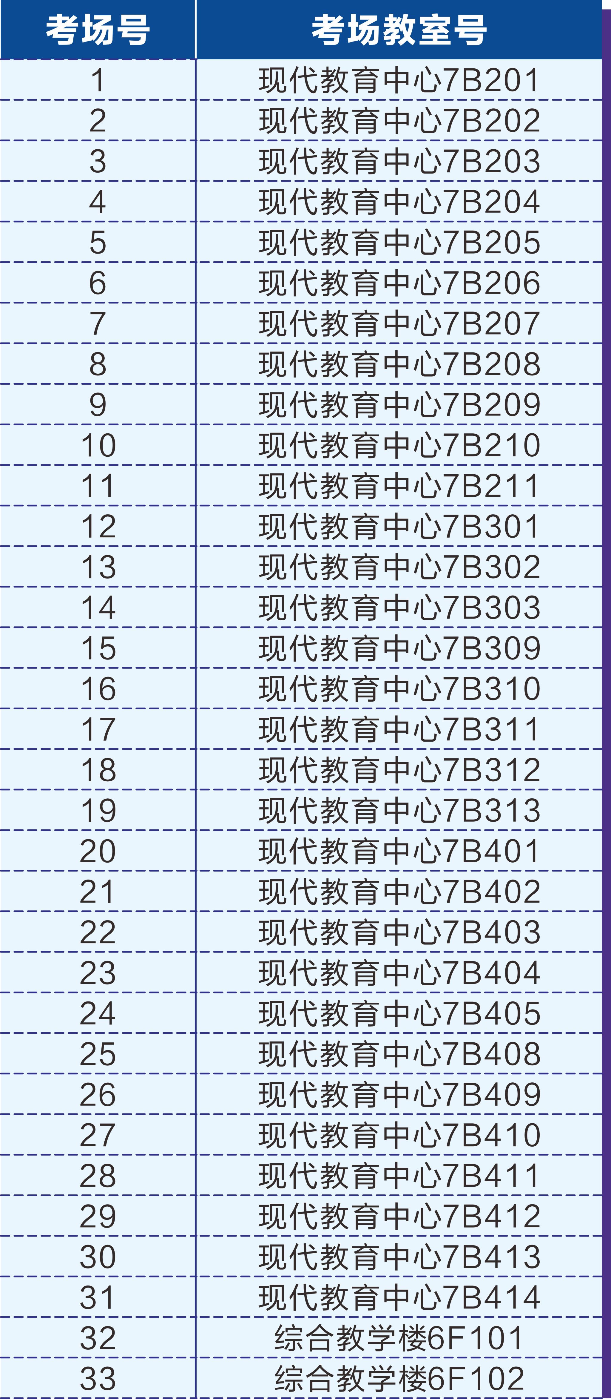 我校考点地址为广东省东莞市松山湖大学路1号,东莞理工学院(松山湖校区)。考场安排在综合教学楼6B-6F、现代教育中心7B。具体考场安排表及考场分布示意图详见如下图所示。