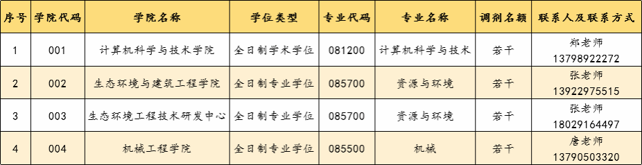 我校2021年接收调剂生的专业有计算机科学与技术、资源与环境、机械,具体信息如下: