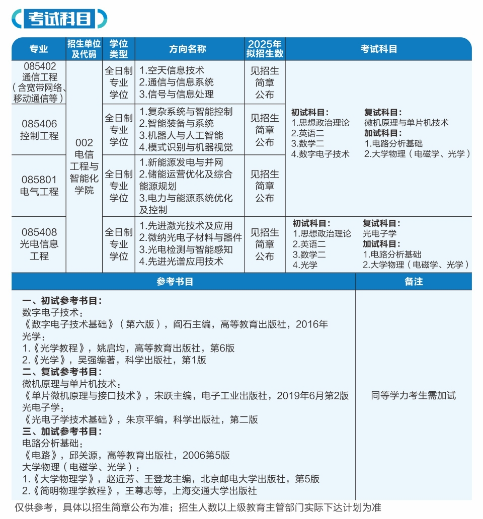 二级招生单位:电信工程与智能化学院