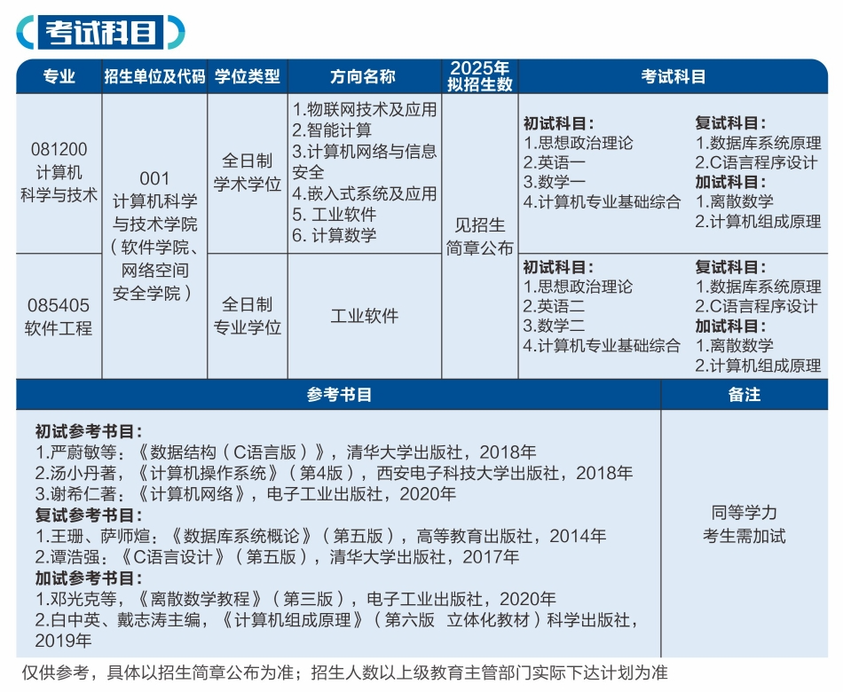 二级招生单位:计算机科学与技术学院(软件学院、网络空间安全学院)