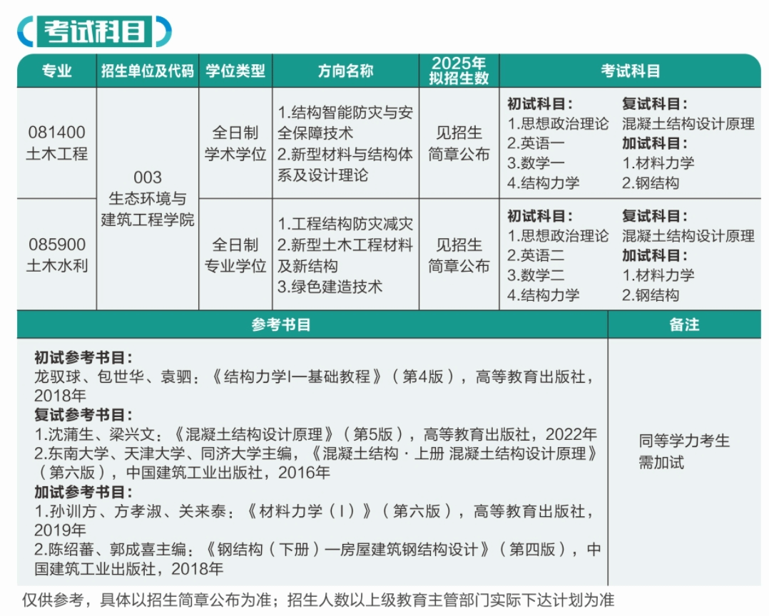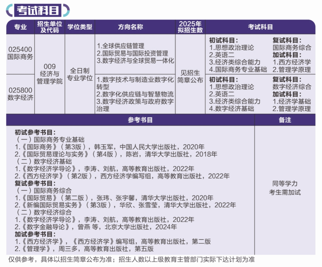 七、2025年硕士研究生考试科目