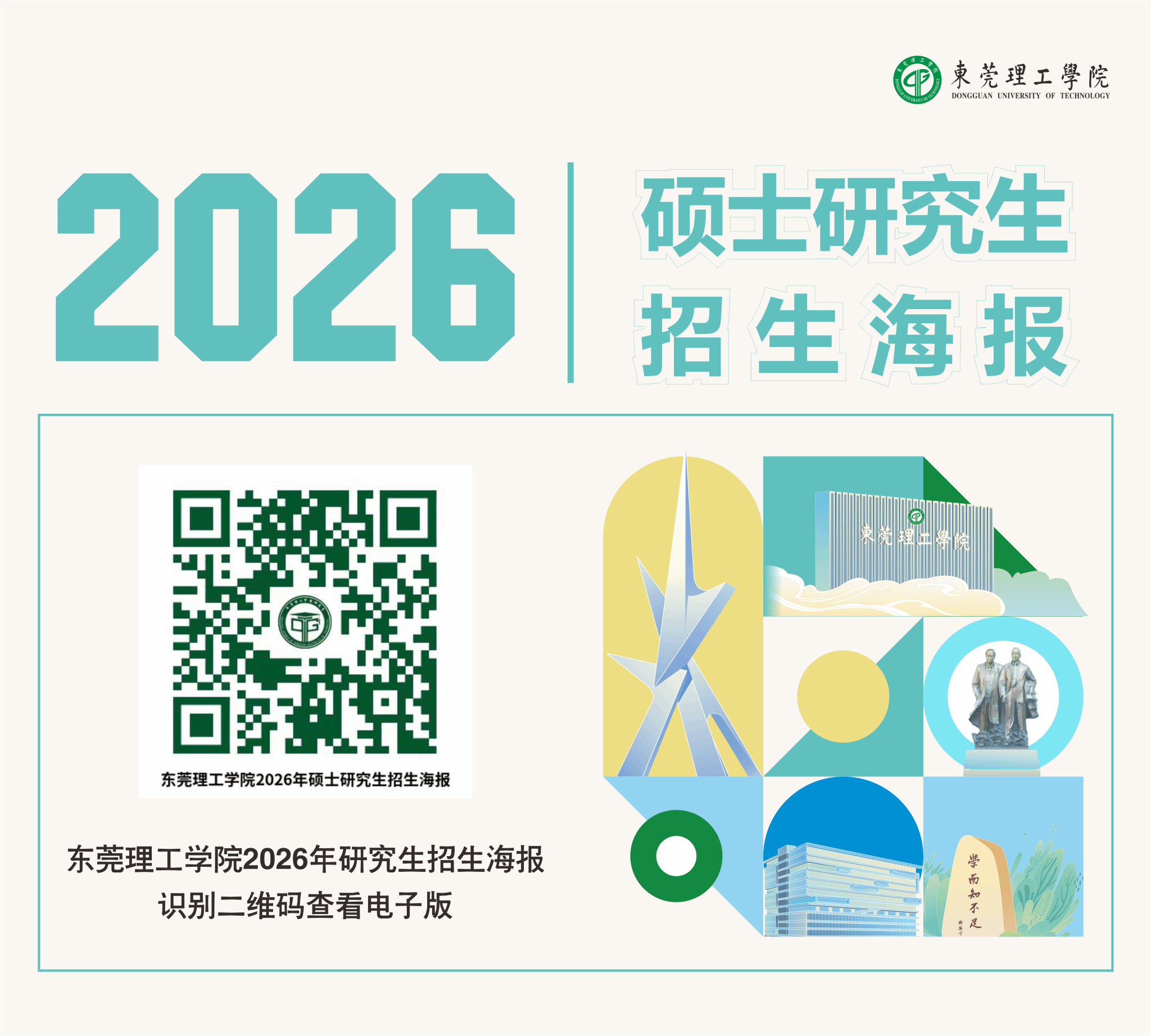 东莞理工学院2026年硕士研究生招生海报出炉啦!快来扫描以下二维码或点击“阅读原文”获取电子版招生海报吧!
