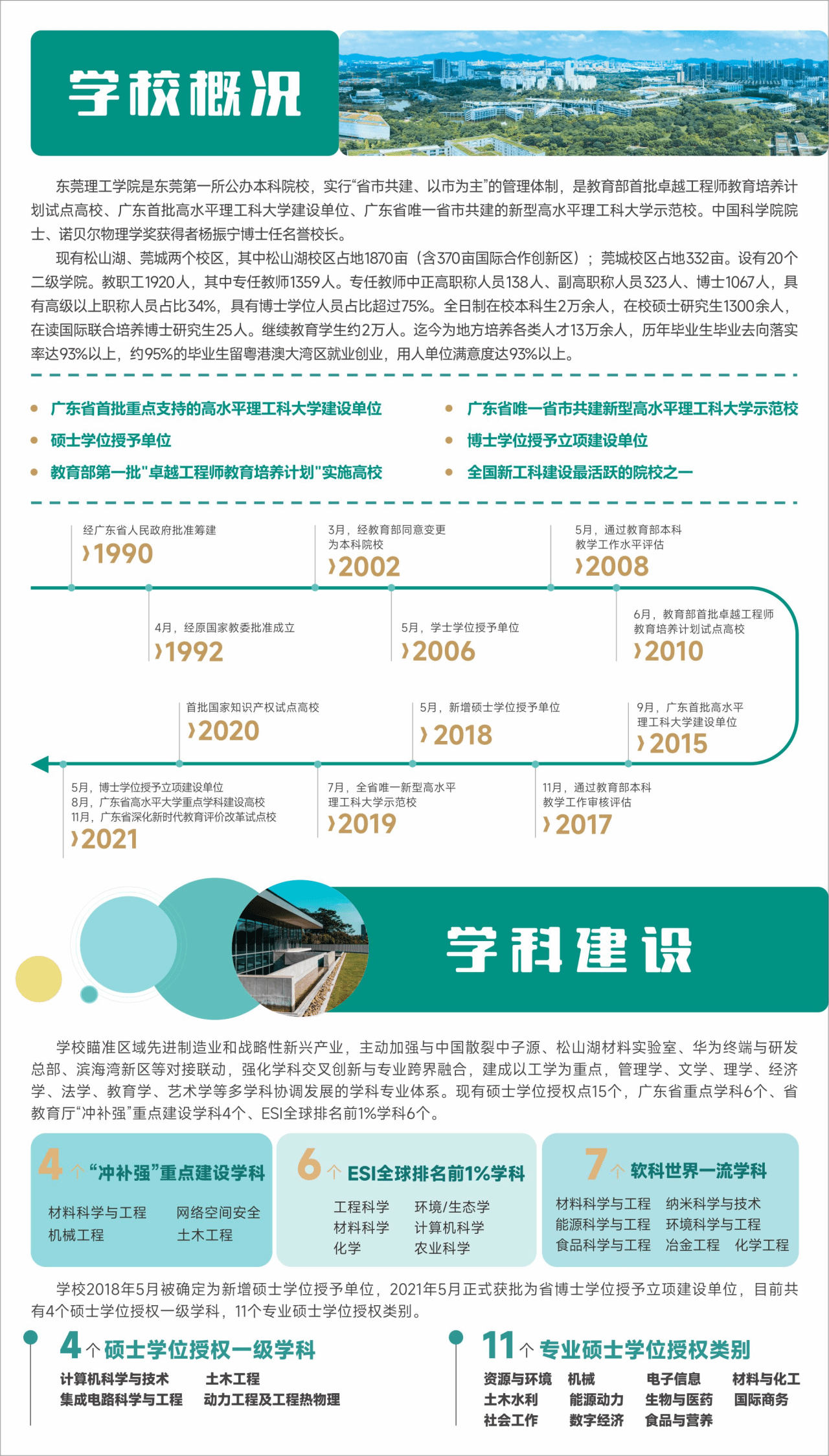 现有松山湖、莞城两个校区,其中松山湖校区占地1870亩(含370亩国际合作创新区);莞城校区占地332亩。