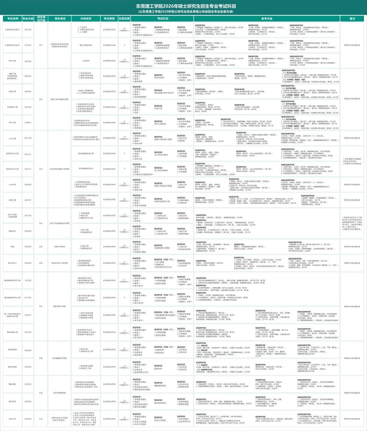 考试科目以公布的《东莞理工学院2026年硕士研究生招生专业目录》为准